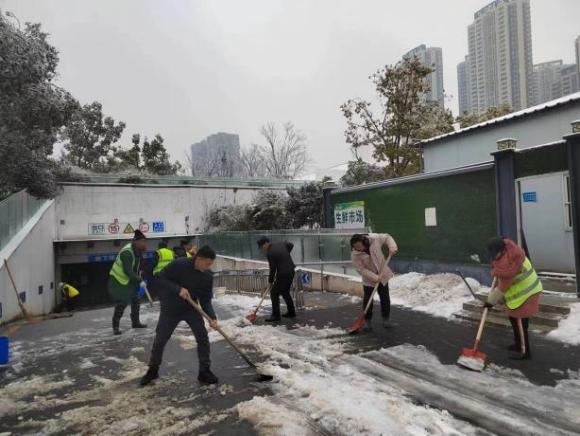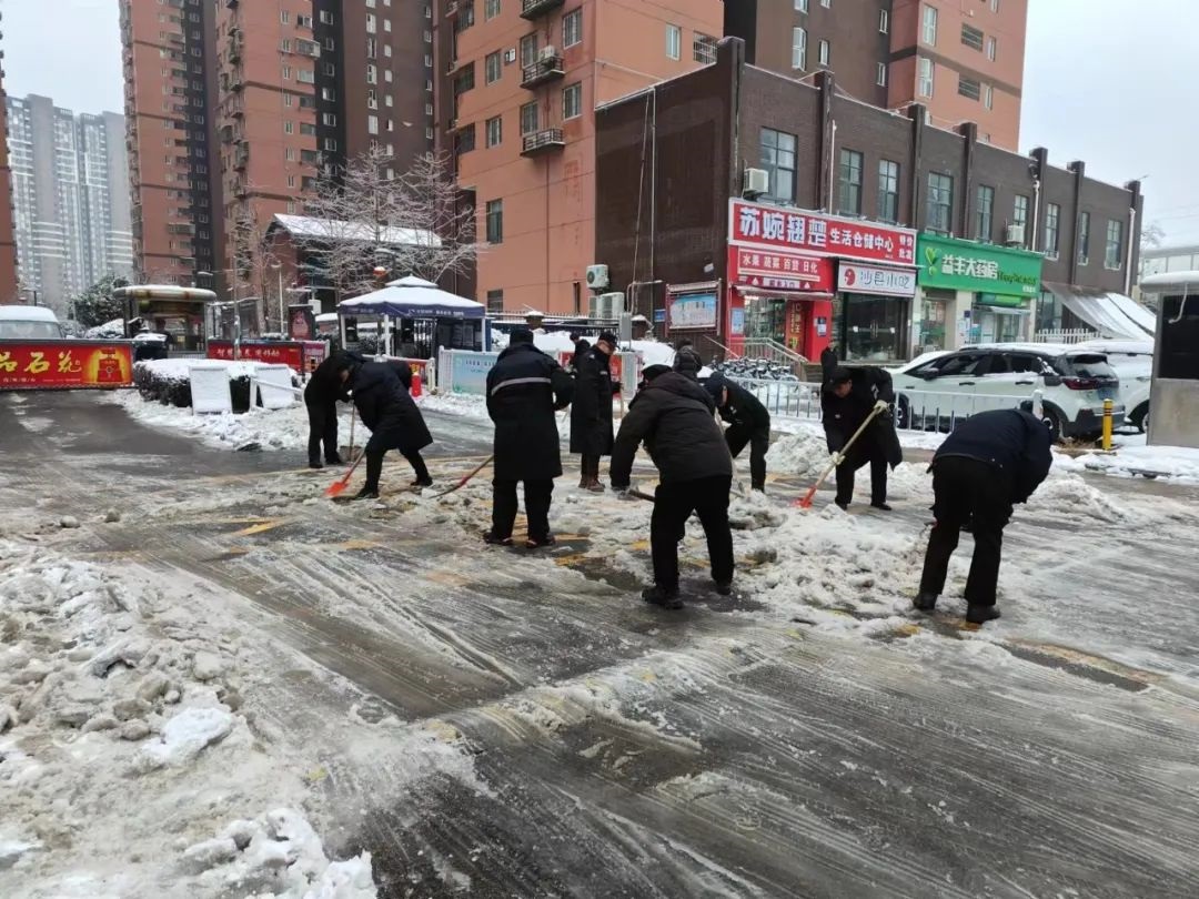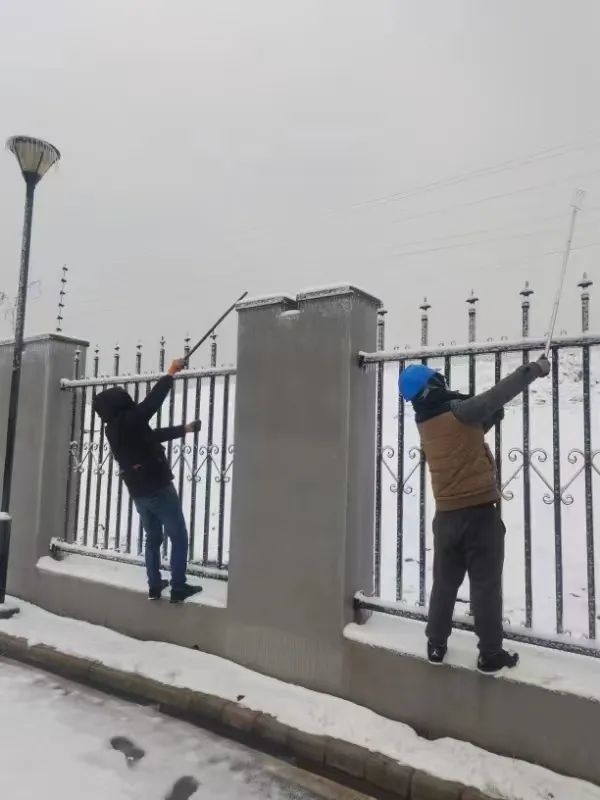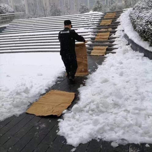 ? ? ? ?為應(yīng)對低溫雨雪冰凍天氣,武碧綜發(fā)公司全員行動迅速成立掃雪隊伍,對公司各項目小區(qū)道路和周邊道路的積雪、覆冰進行清掃,并及時拋灑融雪劑、鋪設(shè)麻袋、草墊等防滑物資,確保各出入口及通行區(qū)域無積雪結(jié)冰,全力保障居民的出行安全。